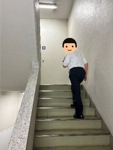 Aさんは、退社前に「6Fまで上って帰りまーす。お疲れ様でした。」の掛け声とともに毎日実施されていらっしゃいます。