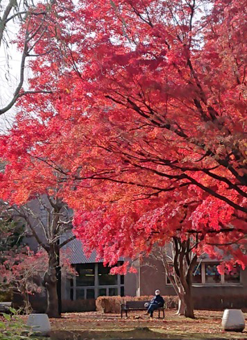私の勤務する八戸支社の近くにある図書館の敷地内の紅葉です。